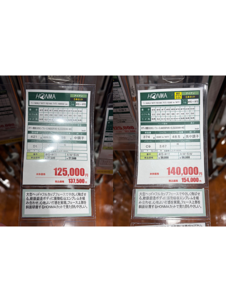 左側は「TW767(NS950GH neoシャフト」※スチールシャフト