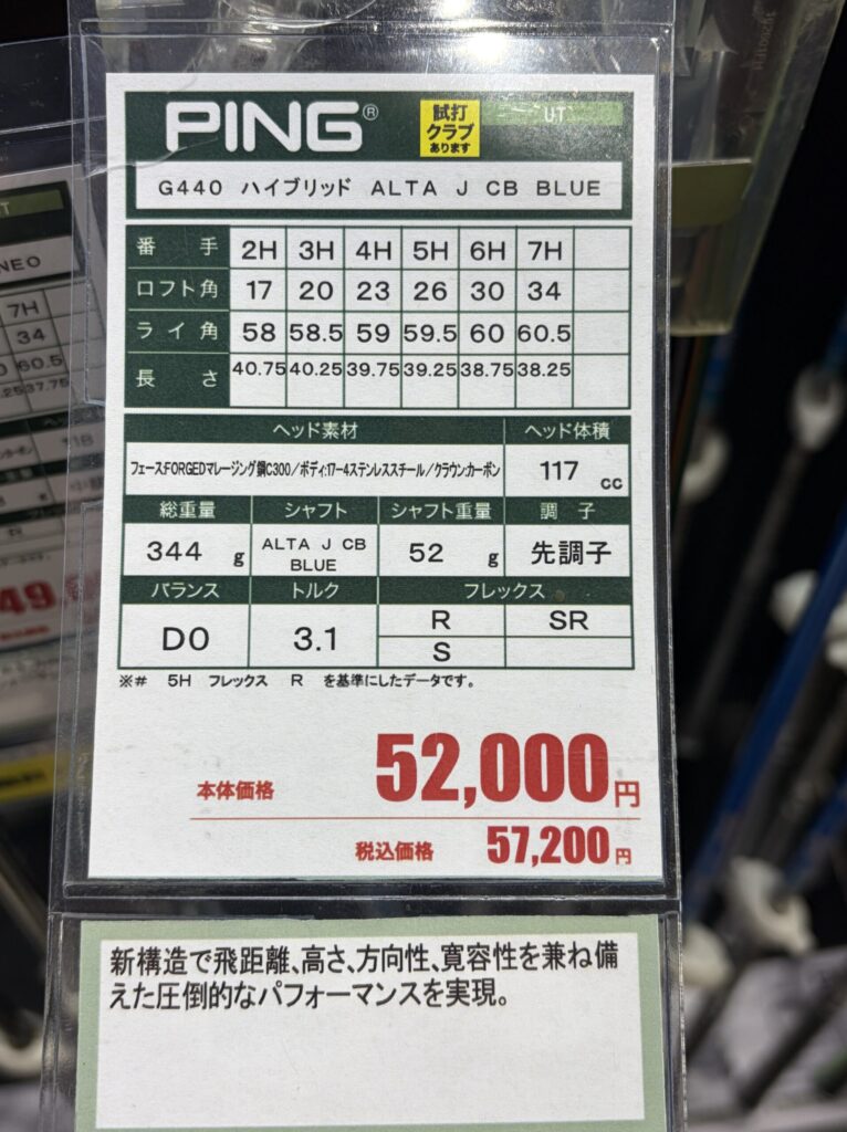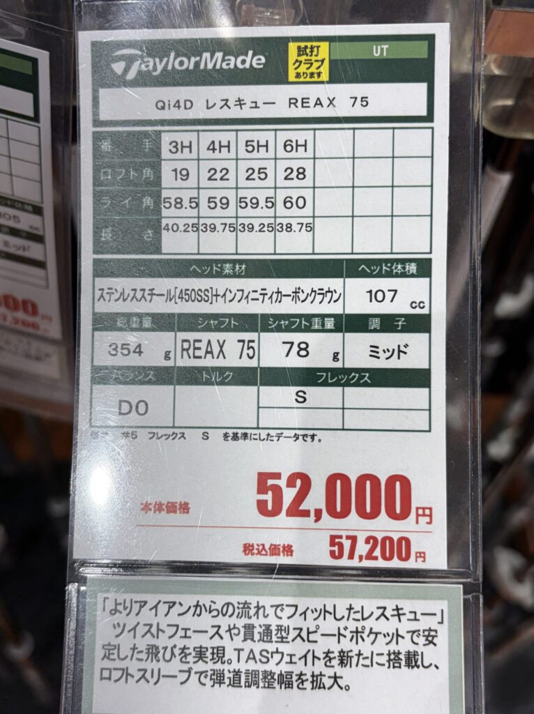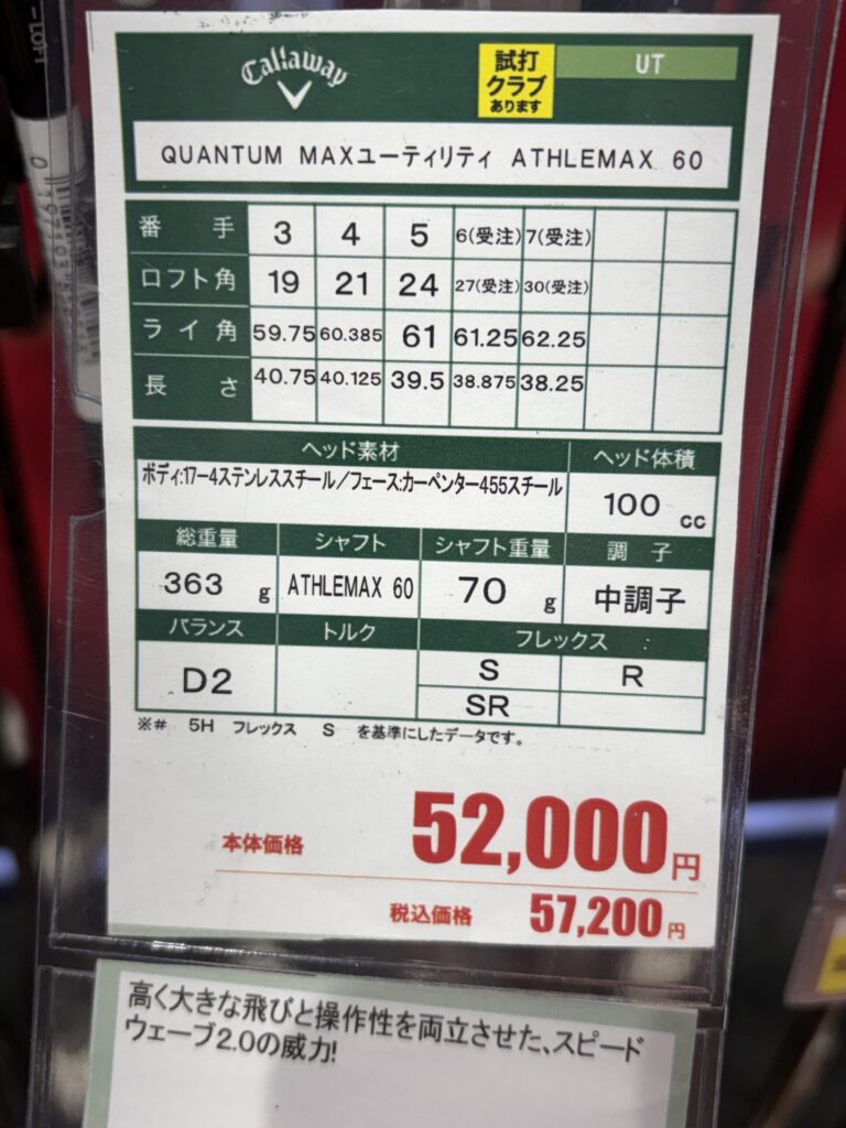 2026.4.2時点で都内ゴルフショップでの店頭価格です