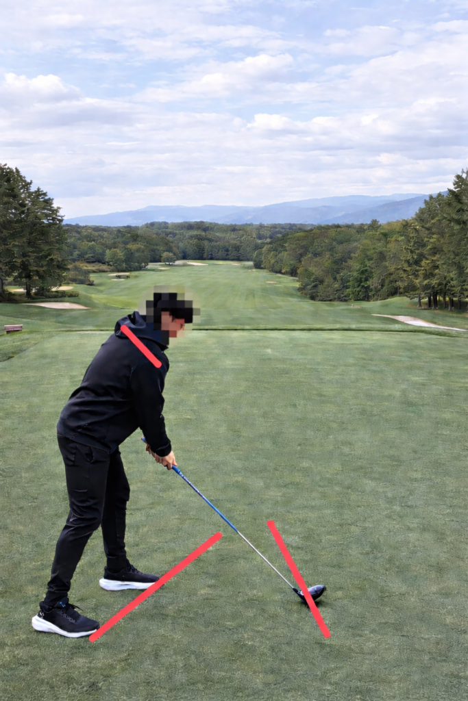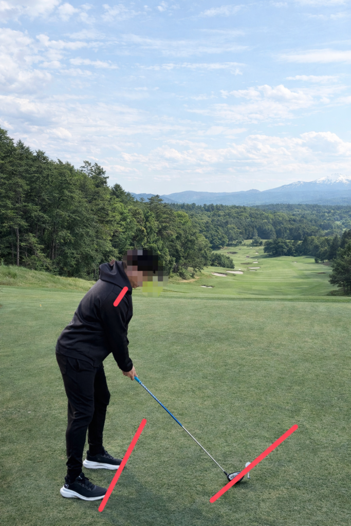 カット打ちになりやすく、スライスがほぼ確定している構えです