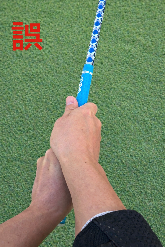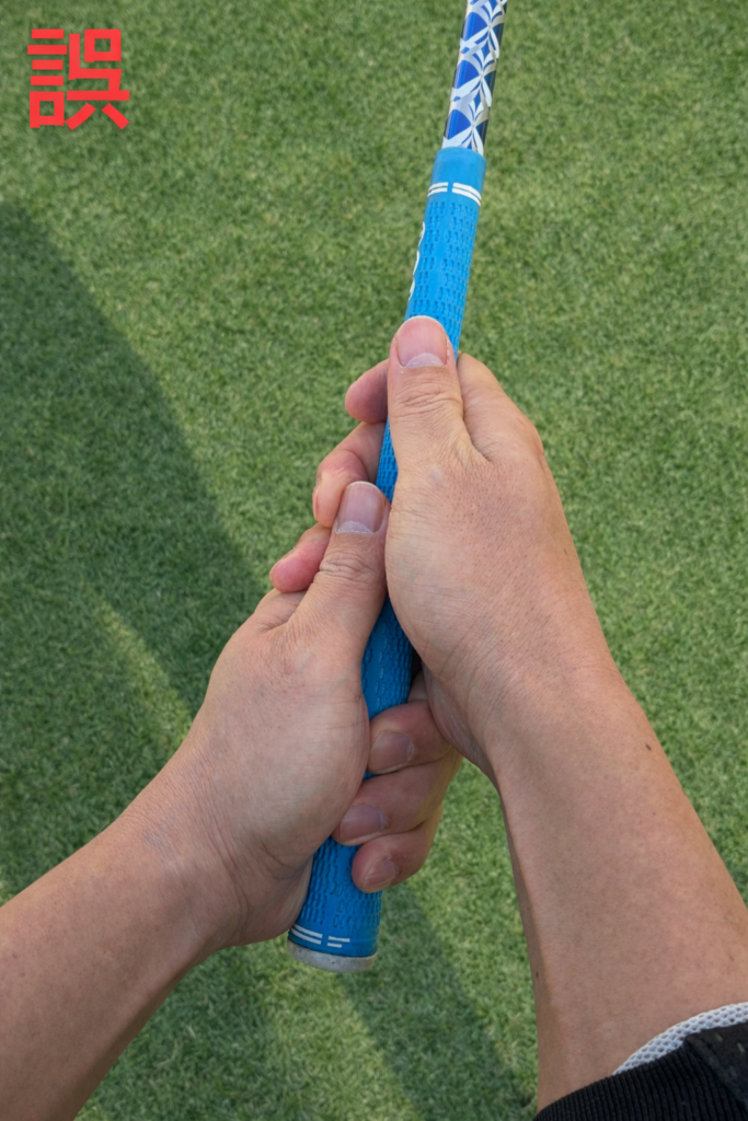 上記画像は、一見何も悪くないグリップに見えますが、左手のグリップが開いて握っています