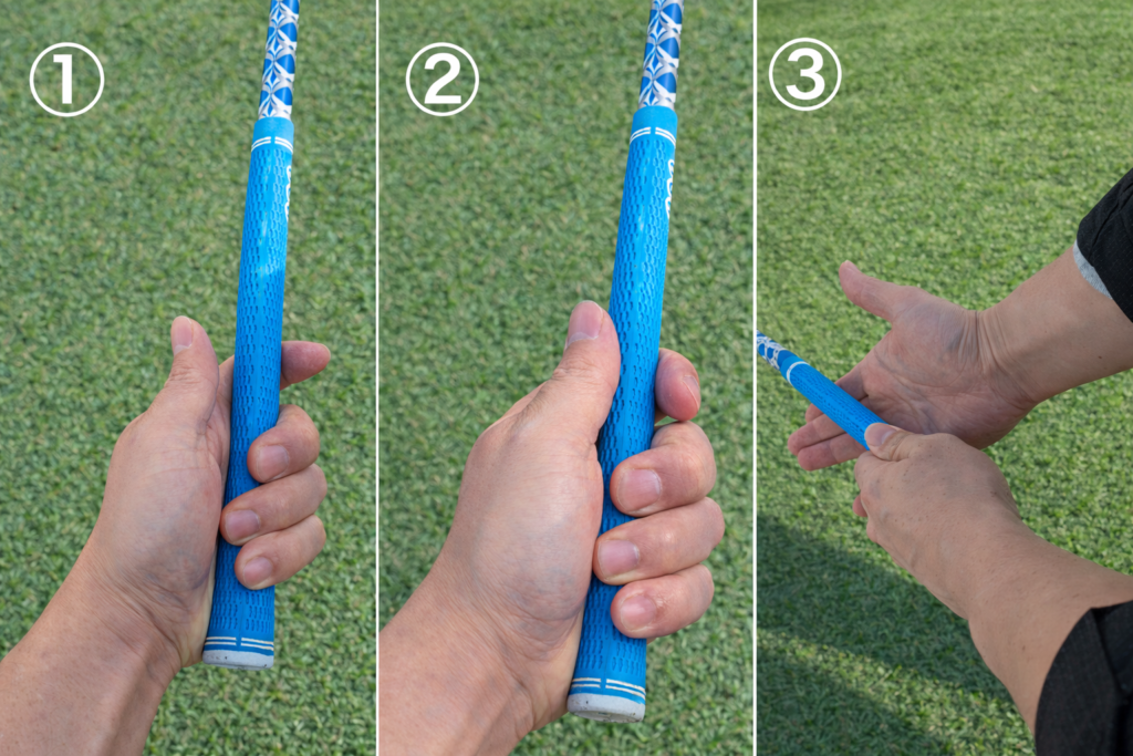 この状態のグリップだと、ボールを打つインパクトでクラブフェイスが動きやすく